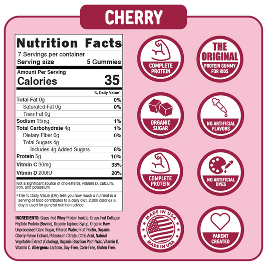 Most other kids protein gummies are made with incomplete plant-based protein, artificial dyes, or seed oils. Punchies uses clean-label ingredients—no artificial sweeteners, no allergens, no junk. Just pure, complete protein from collagen and grass-fed whey.