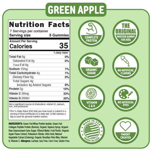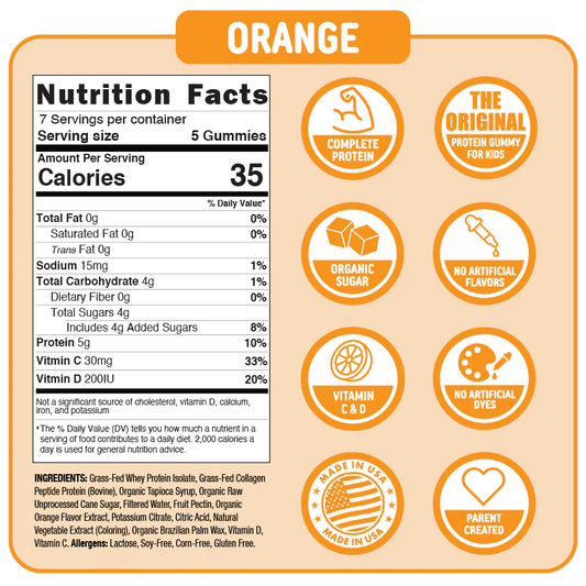 Providing your kids with a clean, dye-free, seed oil-free protein gummy is a smart choice for their health and well-being. Punchies Protein Gummies for kids are packed with high-quality protein to support their growth, energy, and active lifestyles, without the harmful additives found in many other supplements. Other kids protein gummies are made with incomplete protein (plant based), artificial sweeteners, or artificial dyes. Our protein gummies are free from artificial dyes and seed oils, they avoid potential allergens and inflammatory ingredients, ensuring a pure and gentle option for young bodies. Made with actual body-building complete proteins, Punchies protein gummies for kids are the only choice for parents who want to give their kids the best. Plus, their tasty, gummy form makes them an enjoyable treat that kids will love, turning a healthy habit into something they look forward to every day. By choosing these kids protein gummies, you’re giving your kids a nutritious boost that aligns with a clean, wholesome diet, setting them up for long-term health and vitality.