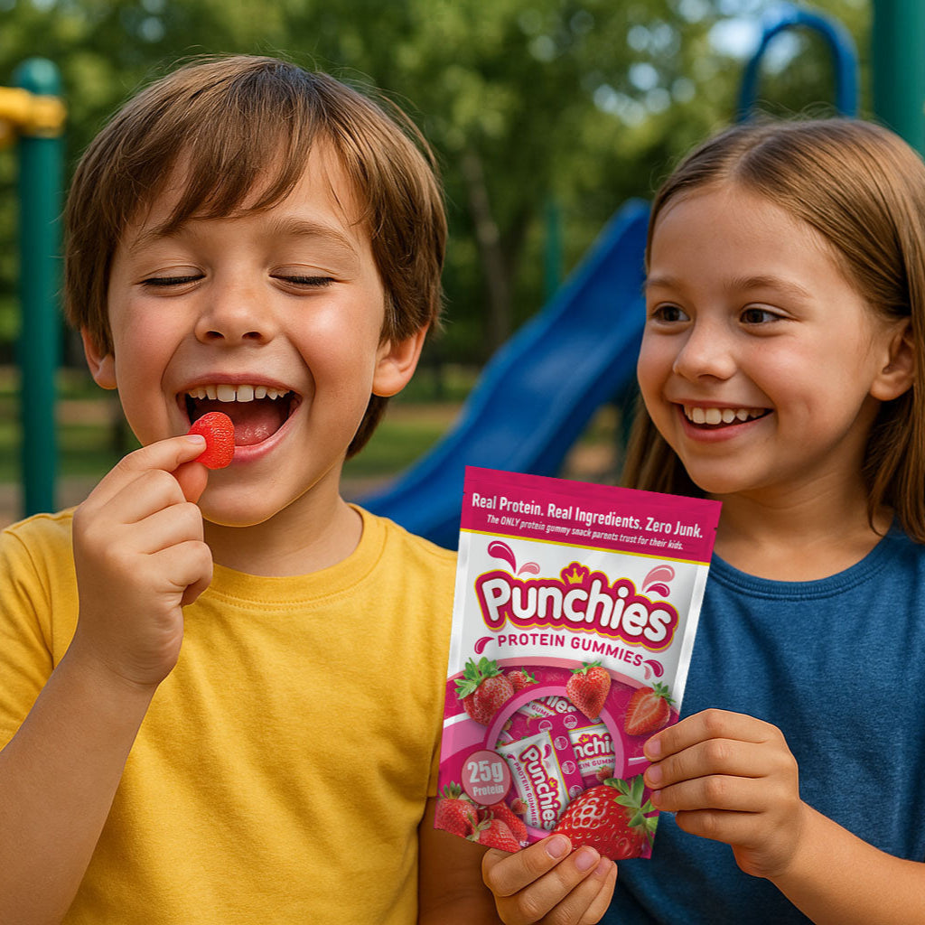 Packed with real protein, clean ingredients, and no junk β Punchies make it easy for parents to say yes and kids to ask for more. No powders, no mess, just grab-and-go gummies with all the good stuff growing bodies need.